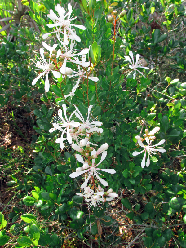 On the south Oslo Riverfront Conservation Area near the kiosk grows tarflower (Bejaria racemosa). When not in flower, this shrub of scrub and pine flatwoods is easy to overlook. Its spring-summer flowers, however, are quite striking and are held in racemes, the source of its species name, racemosa.