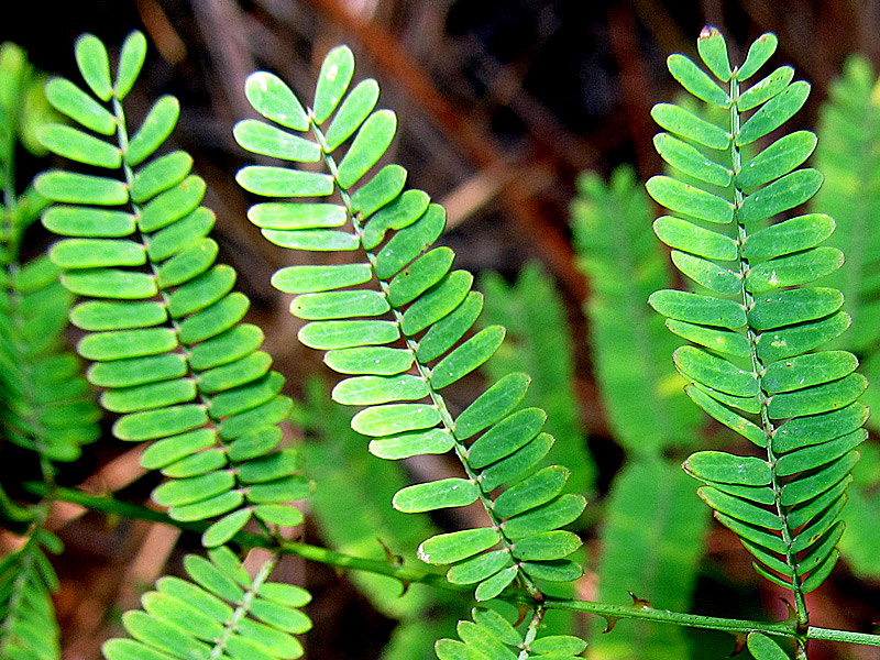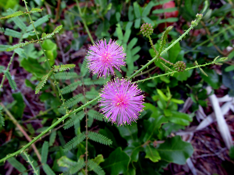 Other common names include sensitive briar and cat’s claw. This plant once was known as Shrankia microphyllum.