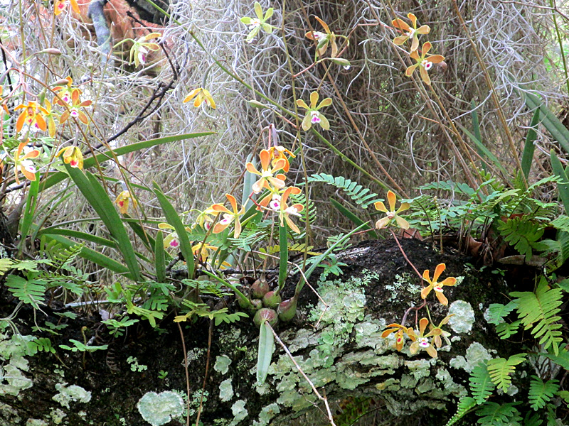 Orchid island is the given name of the barrier island in Indian River County, and, if you closely examine the road signs that herald its name, you will see a depiction of butterfly orchid (Encyclia tampensis). The picture above was taken on Sunday, June 16, at the south Oslo Riverfront Conservation Area along the new trail cleared as part of Sam Keiffer’s Eagle Scout project. This stunning display was of epiphytes was spotted by (Eagle Eye) Steve Goff with Ken Gonyo after air potato control work.