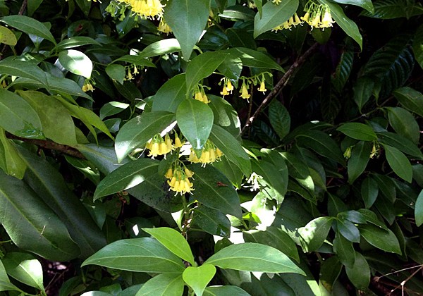 Snowberry, properly sited, can be an excellent addition to your yard. Its snow-white fruits are consumed and spread by birds and other wildlife. Its flowers reportedly are favored by julia (Dryas iulia) butterflies. Be sure to consider the ultimate size of this clambering shrub. The mounds of snowberry along the trail edge are more than eight foot tall and wide. In shadier conditions, snowberry is more vine-like, climbing up other vegetation.
