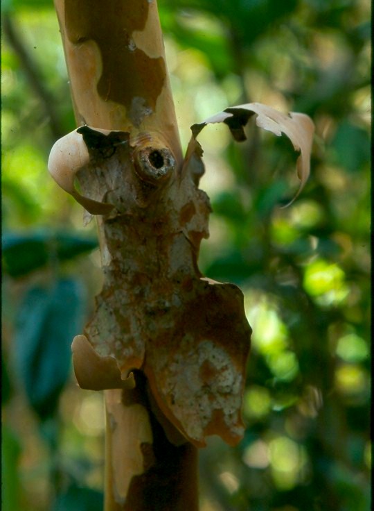 At the Oslo Riverfront Conservation Area, simpsons stoppers grow in hammock shade , where over many years, they have have grown into small trees with exfoliating bark that give rise to the common name, nakedwood stopper …