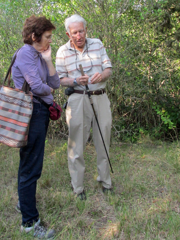 Dr. Jay Barnhart, a self-described mycophile, gave a marvelous, updated What Fungus is Among Us? talk on Saturday, November 15, in the Boathouse of the Florida Medical Entomology Laboratory followed by a mushroom-seeking walk. We did not find any mushrooms. The closest that we got was the mycelium, the white thread-like hairs that are the vegetative past of a fungus, on a dead branch pictured above.