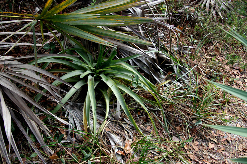 The scene above, gnawed leaves of green wild pines, littering the ground was frequent and heart-breaking. Very young, tiny bromeliads were spared, as they did not offer enough “food” and have grown up – only to be devoured now.