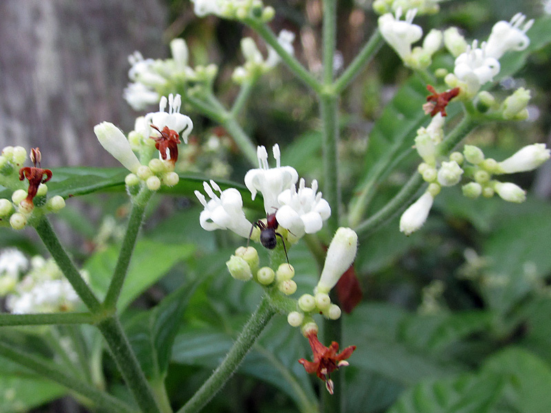 Domatia — special ‘houses’ for insects ‘grown’ by the plant — are found on the underside of the deeply-veined leaves (on the vein axils), and extrafloral nectaries — non-floral reservoirs of nectar — attract ants and other insects, perhaps to eat moth eggs …