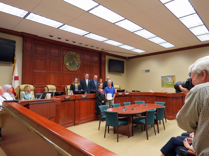 Steve Goff (Class of 2006) is pictured above accepting a proclamation in support of national invasive species awareness week, February 22 through February 28. Steve Goff has a tax preparation and accounting business nearly across the street from Vero Beach City Hall.