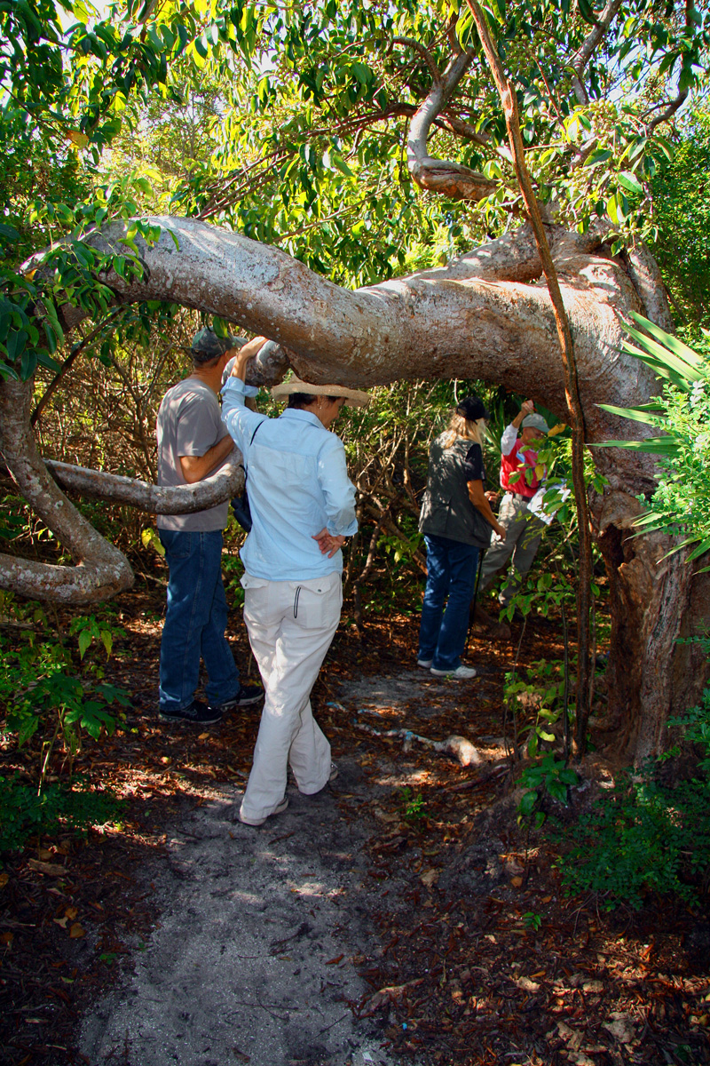 Gumbo limbo (Bursera simarouba) grows to grand size at the Brevard Barrier Island Sanctuary and Education Center (BIC) where the warming influence of water moderates temperature extremes. Because of its reddish, peeling bark, gumbo limbo also is known as the tourist tree. Gumbo limbo reportedly means “slave’s birdlime”; The resinous, sticky sap of this tree was smeared on tree branches to ensnare birds (for consumption).