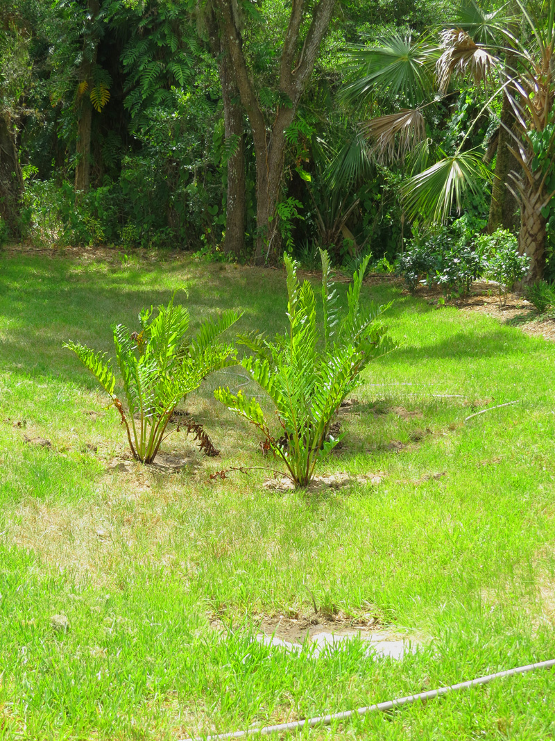 Marta (Class of 2004) & Mike Kendrick have used coontie in their landscape photographed at a yard visit by the Eugenia Chapter of the Florida Native Plant Society with tender, new growth …