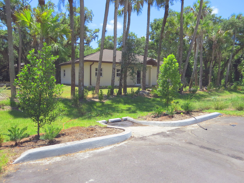 At Audubon House volunteers relocated giant leather ferns (Acrostichum daeniofolium) to the low areas of the dry retention pond and replaced them with comely coonties (Zamia floridana) graciously donated by Robin Pelensky of Surlaterre Landscape Architecture.