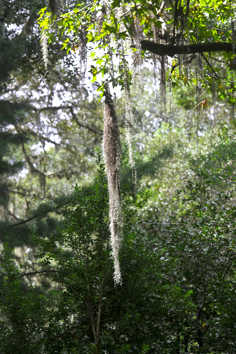 Leu Gardens in Orlando is more temperate and less tropical than Vero Beach. Look carefully at the picture above taken by Karen Schuster for the leaves of a tall sweet gum (Liquidambar styraciflua) tree above the dangling Spanish moss (Tillandsia usneoides).
