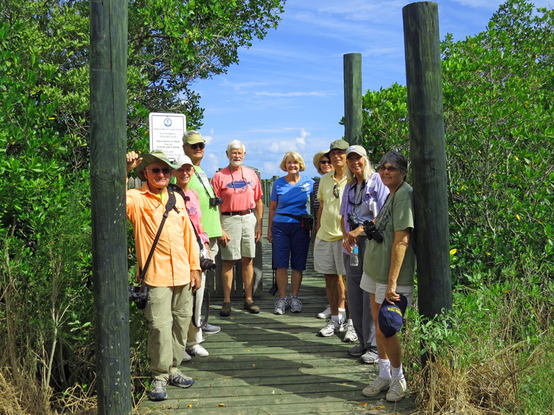 Everyone enjoyed Nancy’s enthusiastic nature interpretation. Toward the end of the walk at the dock on the Indian River Lagoon, the ‘slow’ part of the group posed for a photo …