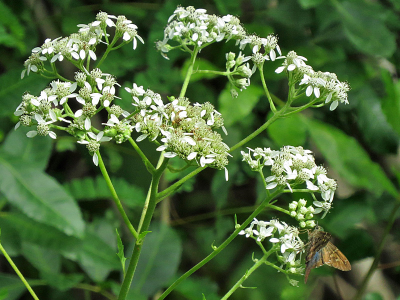 Nancy pointed out a long-tailed skipper (Urbanus proteus) nectaring upon it. Skippers are so-named for their erratic, darting flight or “skipping”. Like butterflies and unlike moths, other Lepidoptera (“scaly” winged insects), skippers hold their wings in an upright position when at rest.