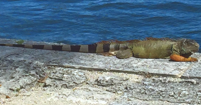 This large adult green iguana (Iguana iguana) was sunning on the seawall at Vizcaya in Miami. Iguanas are well-established exotic invaders in south Florida and do occur in Indian River County, though, fortunately, not at the Oslo Riverfront Conservation Area.