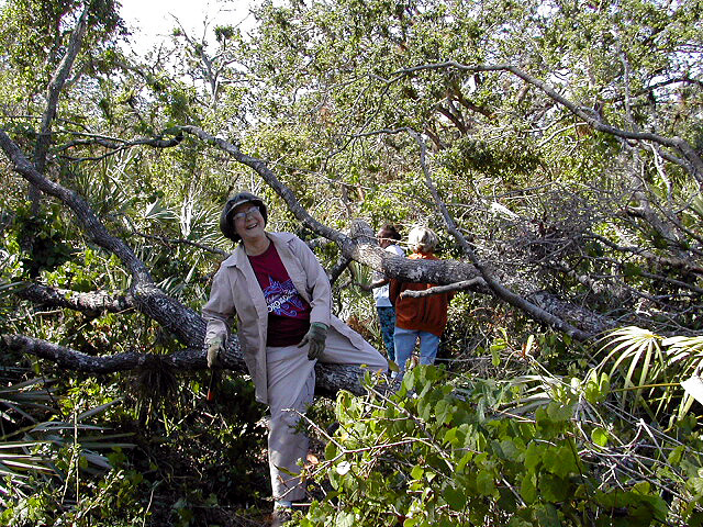 The remnants of the large live oaks that fell in the hammock loop area still remain quite visible. Those oaks stood through the long lashing by Hurricane Frances and might have been able to withstand fast-moving Hurricane Jeanne were it not for the 10+ inches of rain dumped by Tropical Storm Ivan and held by the hardpan layer of soil.