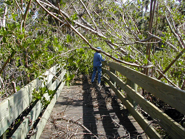 The sister storms of 2004 dramatically altered the constitution of the Oslo Riverfront Conservation Area. Hurricane Frances landed near Stuart on September 5, 2004 as a category 2 storm and moved slowly, painfully slowly, up the coast. Hurricane Jeanne, a cat 3 storm, landed near Stuart not far from where Frances came ashore, on September 26, 2004. In between the significant Sister Storms, Tropical Depression Ivan, a hurricane when it struck the panhandle, circled back over Florida to drop more than 10 inches of rain on us.