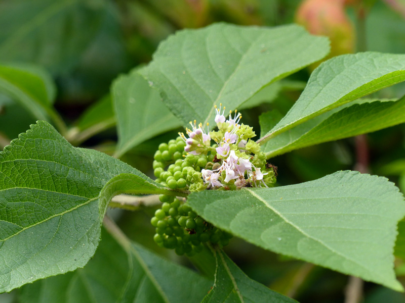 Beautyberry (Callicarpa americana) had a few ripe fruits, many unripe fruits and flowers …