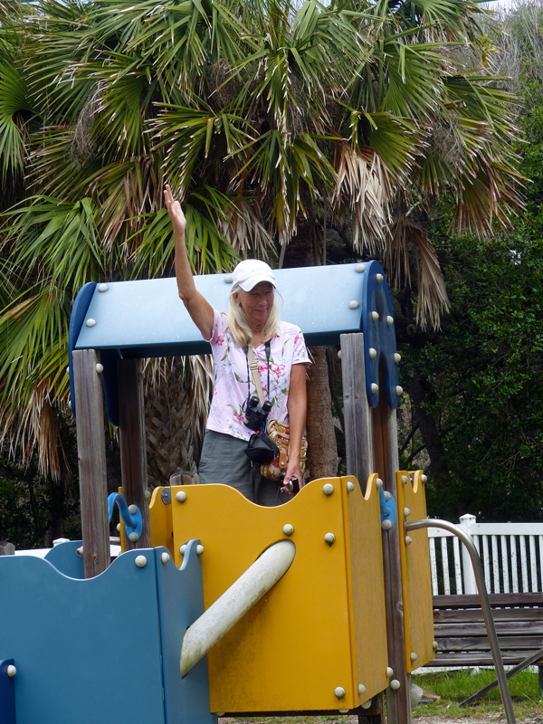 Nancy Soucy (Class of 2010), Cindy Hersh (Class of 2016), Lani York (Class of 2016), and Trish Kruza (Class of 2015) grace the elevated restrooms at Treasure Shores Park on Saturday, June 3. This beach park has plenty of parking, restrooms with showers, shaded picnic tables, a playground, beach access (but no lifeguards), and some short nature trails through handsome hammock.