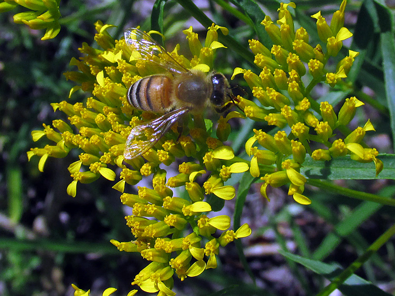 Some plants that we would not wish to include in our yard also attract bees like poison ivy (Toxicodendron radicans). Notice the conspicuously stuffed pollen basket (corbiculae) on the back legs (tarsi) of the European honey bee below. You will find this adaptation on European honey bees and other social bees that need to carry pollen back to a communal hive …