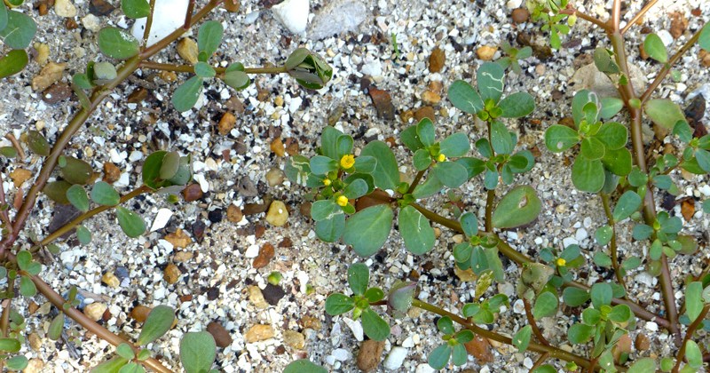 Little hogweed (Portulaca oleracea) usually is regarded as a weed here in the United Sates, but this widespread, naturalized succulent of temperate and tropical places is cultivated elsewhere. Its species name, oleracea, means edible vegetable. Other common names include green purslane, garden purslane, common purslane, pusley, pursley, and wild portulaca.