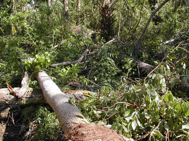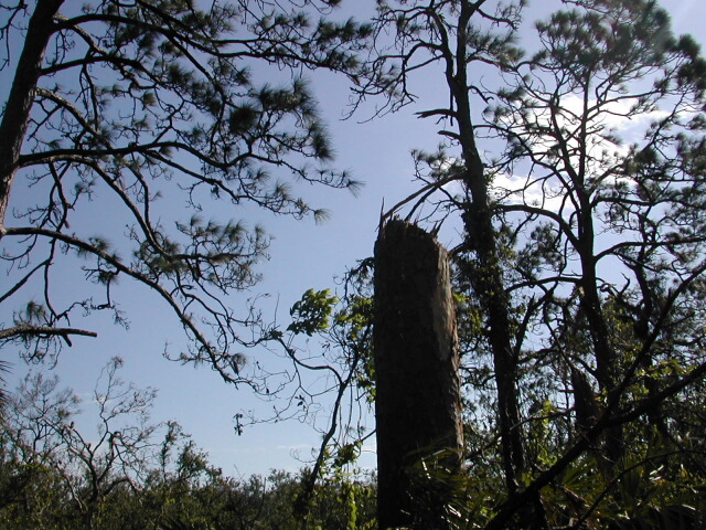 Slash pines (Pinus elliottii var. densa) were snapped apart.