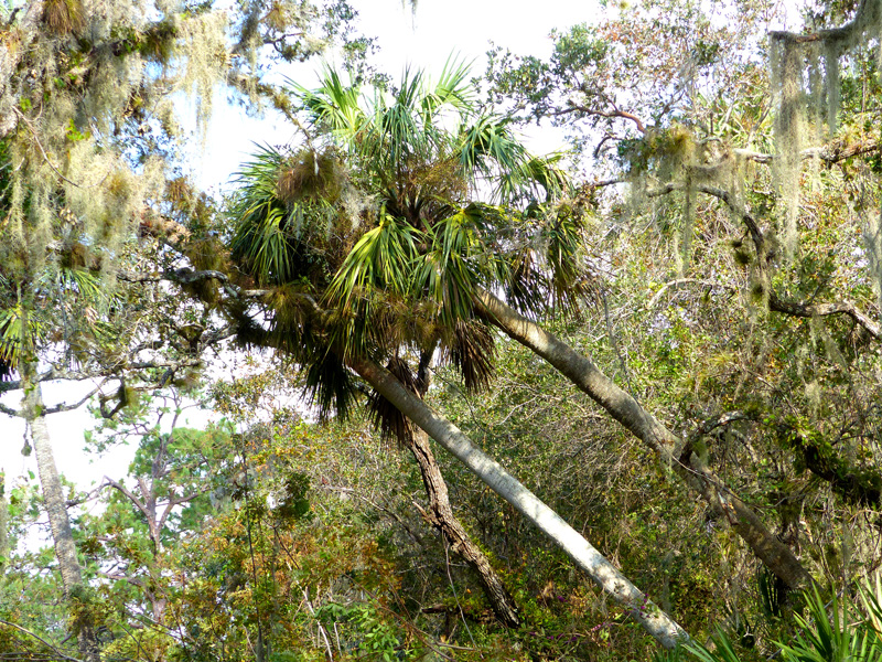 The cabbage palms (Sabal palmetto) were quite resilient and offer a bright green contrast to the browned oaks. Though tall like trees, palms are more closely related to grasses, lilies, and amaryllis.