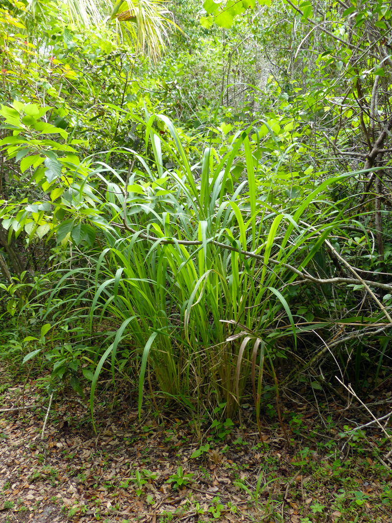 This grass is very variable and can grow in size from 3′ to 16′ tall, according to some sources. A terrible weed of citrus groves, roadsides, and disturbed areas, guineagrass is considered to be a category #2 invasive pest plant by the Florida Exotic Pest Plant Council. It is all too common on the trails at the ORCA.