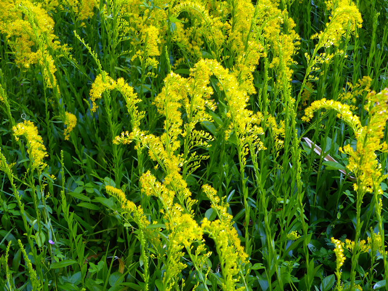 Goldenrod (Solidago sp.) gets a bad rap. The pollen of goldenrod is too large to be a human allergen, but goldenrod often blooms at the same time as ragweed (Ambrosia sp.), the real culprit. Nonetheless, many people consider goldenrod to be a weed.