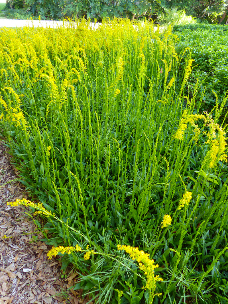 Florida is home to 21 species of goldenrod, according to Dr. Richard Wunderlin’s Florida Plant Atlas. Pictured above is wand goldenrod (Solidago stricta). Also known as narrow-leaved goldenrod, this plant grows in a variety of habitats at Oslo Riverfront Conservation Area (ORCA), including in the pine flatwoods and along coastal wetland edges. It can flower throughout the year, though late summer and fall is its peak time for flowering.