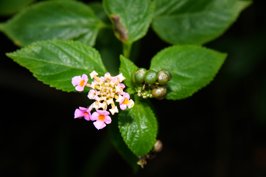 The tiny tubular flowers of this incredibly variable invasive lantana (pictured above and below) even “show off”, changing color with age. White flowers turn pink or red, and yellow flowers become pink, orange or reddish.