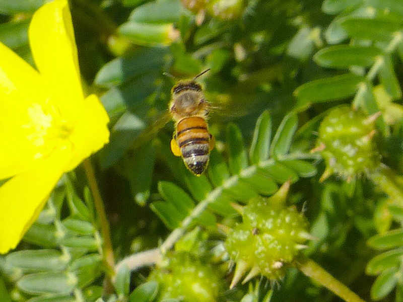 Looks like this bee already has its pollen baskets (corbiculae) pretty full …