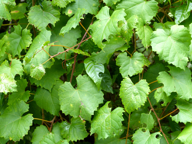 Only female leafcutting bees cut circles in plants leaves, and these ladies are not especially picky about what plants they select, as illustrated above by the distinctive round holes in wild coffee (Psychotria nervosa) and the muscadine grape (Vitis rotundifolia) vine that is engulfing the wild coffee.