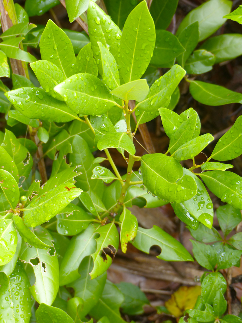 Below is a myrsine (Mysine cubana) at Treasure Shores Park that has been visited by a leafcutting bee.