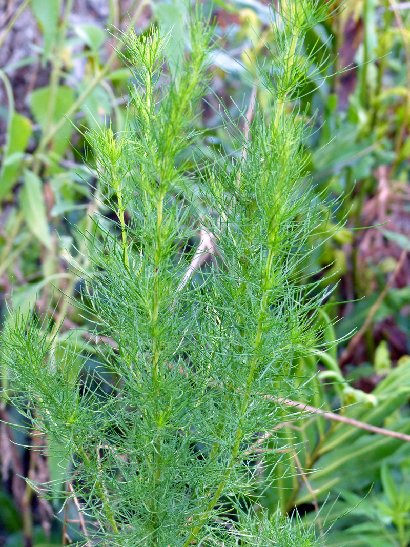 The leaves of dogfennel are very delicate, finely divided, and feathery in appearance, as shown in the photo below taken at the Greenway.