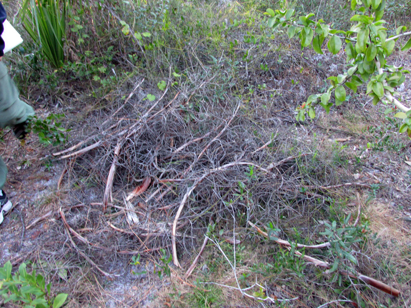 Evidence of rampant and illegal saw palmetto (Serenoa repens) berry harvesting is shown above at south Oslo Riverfront Conservation Area (ORCA) in 2014. Beginning on July 17, 2018 anyone harvesting saw palmetto berries is required to have a Native Plant Harvesting Permit issued by the Florida Department of Agriculture and Consumer Services (FDACS).