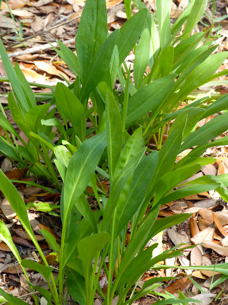 While the tall flowerstalks die back to the ground in the wintertime, the distinctive cluster of basal leaves of this species of goldenrod remains green throughout the year.
