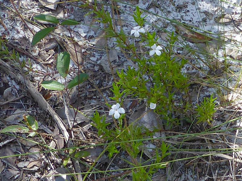 Rough hedgehyssop (Sophronanthe hispida) is a tiny perennial plant that grows in dry pine flatwoods in Florida, Georgia, Alabama, and Mississippi. It is endemic to the coastal plain of the southeastern U.S.