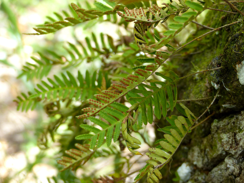 Two ferns are associated with our Florida state tree, the cabbage palm (Sabal palmetto) and are found at both the CBCP and the ORCA: Shoestring fern (Vittaria lineata) and cabbage palm fern (Phlebodium aureum).