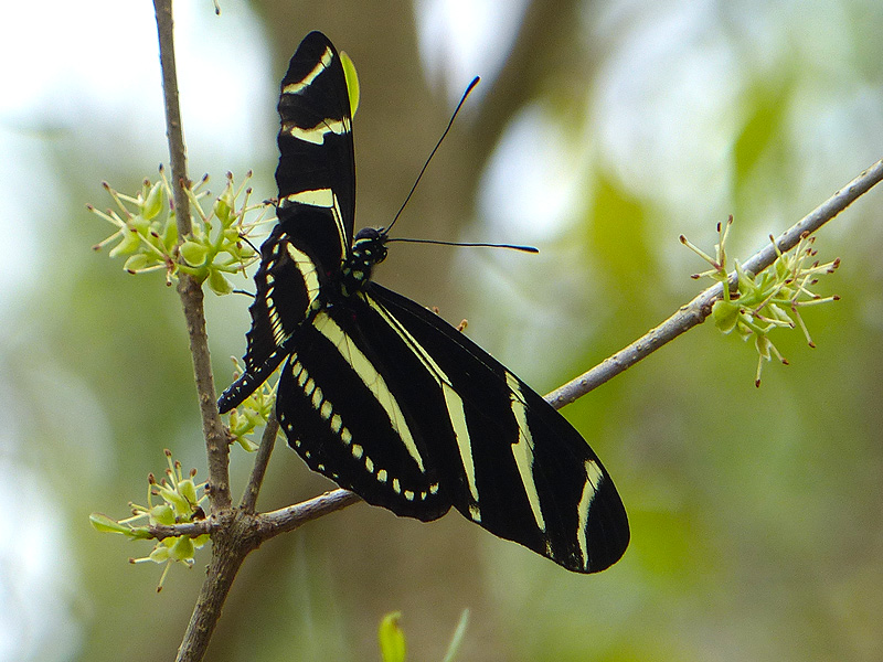 Folks in the 2018 FMEL Volunteer Nature Stewardship class enjoyed seeing a zebra longing butterfly (Heliconius charitonia), our Florida state butterfly, nectaring on its yellow-green flower during February when nectar sources are not very abundant. The beauty of its inconspicuous flower is shown below in a closeup taken and shared by Wildlife Photographer Bob Montanaro …