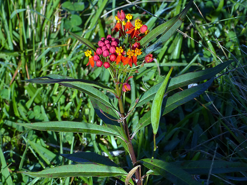 Tropical milkweed also commonly is called scarlet milkweed and bloodflower. Usually its flowers are orange and yellow.