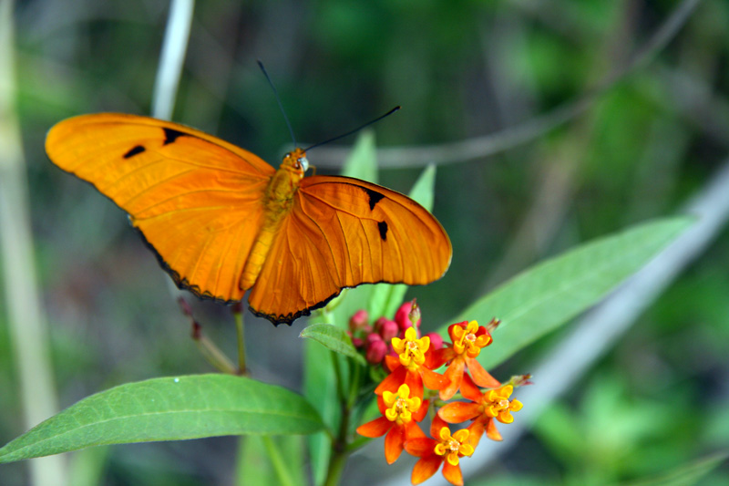 Other butterflies also nectar on this plant, including the first julia butterfly (Dryas iulia) photographed at ORCA in 2008.