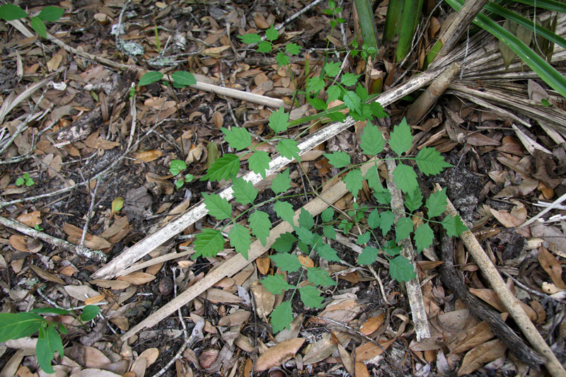 Peppervine is rampant and grows upon many of the trees. This woody vine can grow to be more than 35 feet. Its species name, arborea, means tree-like and references the woodiness of older vines.