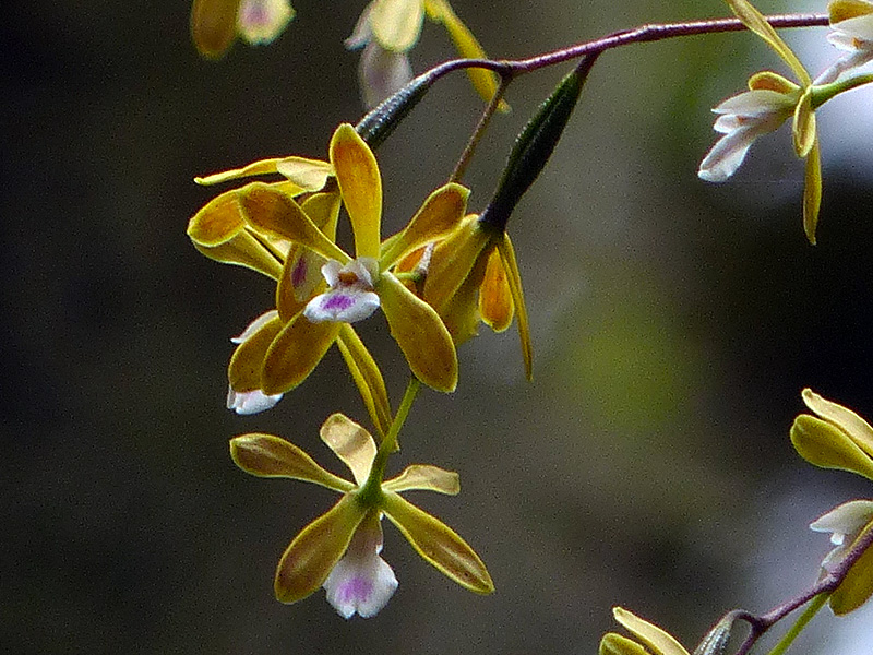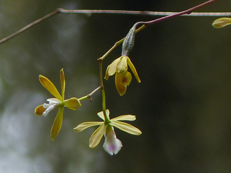As the flowers wither, a seed pod begins to form. This pod will contain lots of tiny dust-like seeds that hopefully will be spread by the wind to a place to germinate and grow into another orchid plant.
