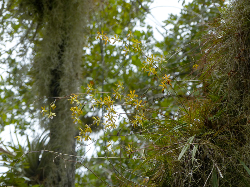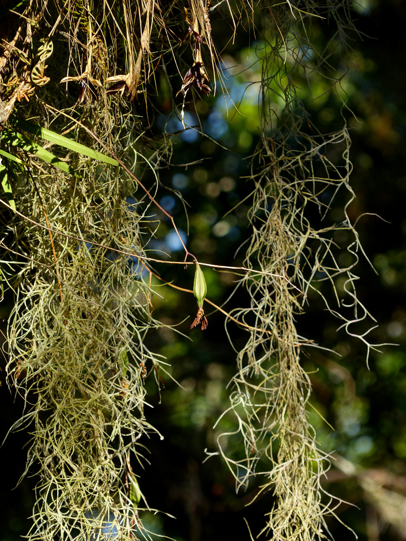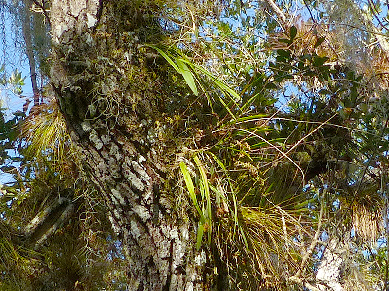 The “hard” part was spotting the orchids in the midst of a carpet of other epiphytes, including lots of southern needleleaf (Tillandsia setacea) and Spanish moss (Tillandsia unsteadies), and resurrection fern (Pleopeltis michauxiana) brown from the sustained lack of rainfall.