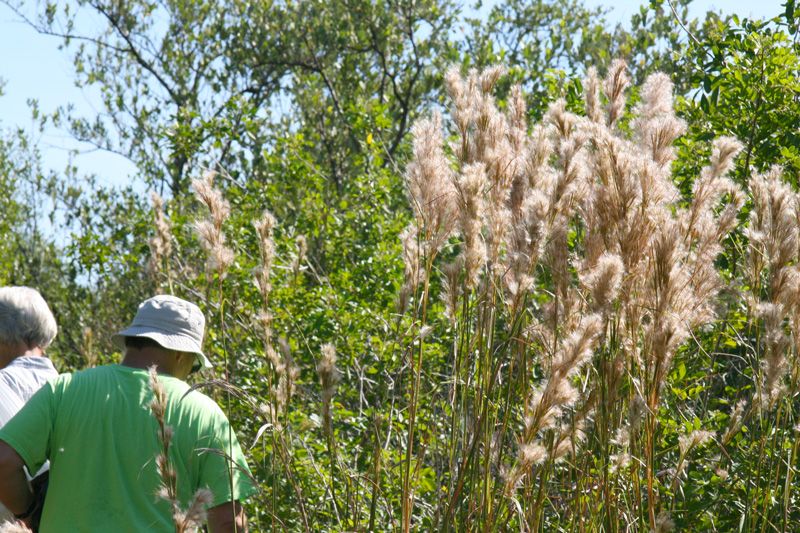 At the Oslo Riverfront Conservation Area, we see it along Oslo Road, on mosquito control dikes, and in other disturbed places. While beautiful in the fall and native, this bunchgrass is considered a weed by many.