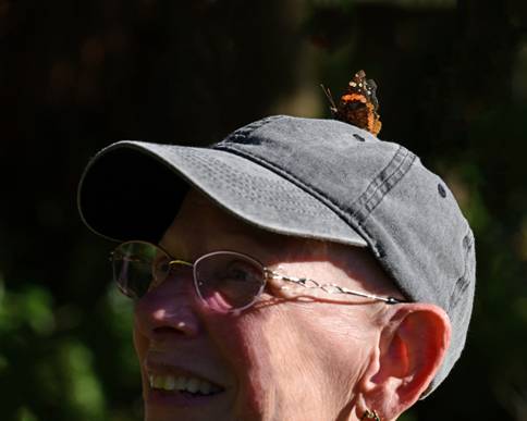 The butterfly graced the head of Bob Bruce pictured above and Karen Schuster (Class of 2009) shown below in photos taken by George Bollis.