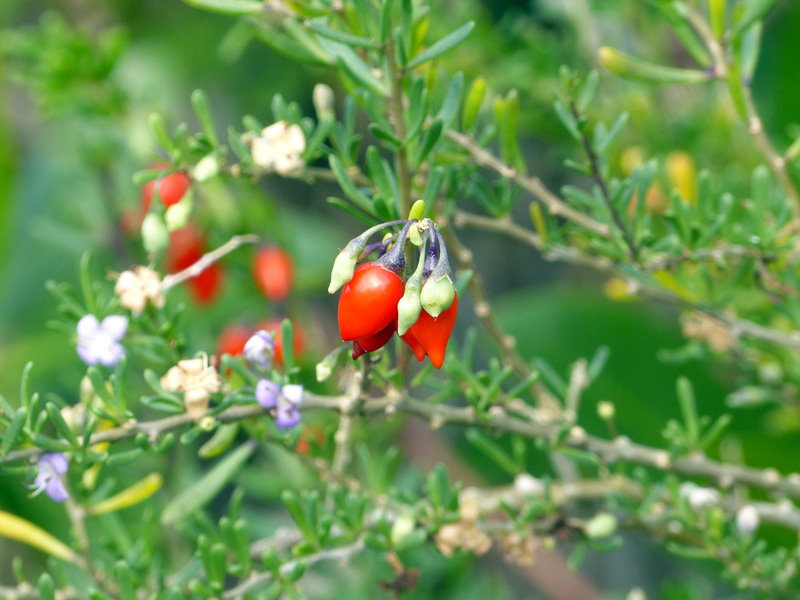 The nightshade family includes many economically important plants such as tobacco, eggplant, tomatoes, and peppers. Indeed, its egg-shaped fruits resemble tiny tomatoes or red peppers. When ripe, they are said to have a sweet, tomato-like taste and can be eaten raw or cooked.