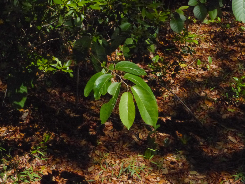 Its alternate leaves range form 2 – 6″ long, have entire margins, and are elliptical to ovate (egg-shaped). The top of the leaves is dark green and shiny and paler green underneath. The ignominy of being chopped down and then “sunburned” causes the leaves to be much lighter in color …