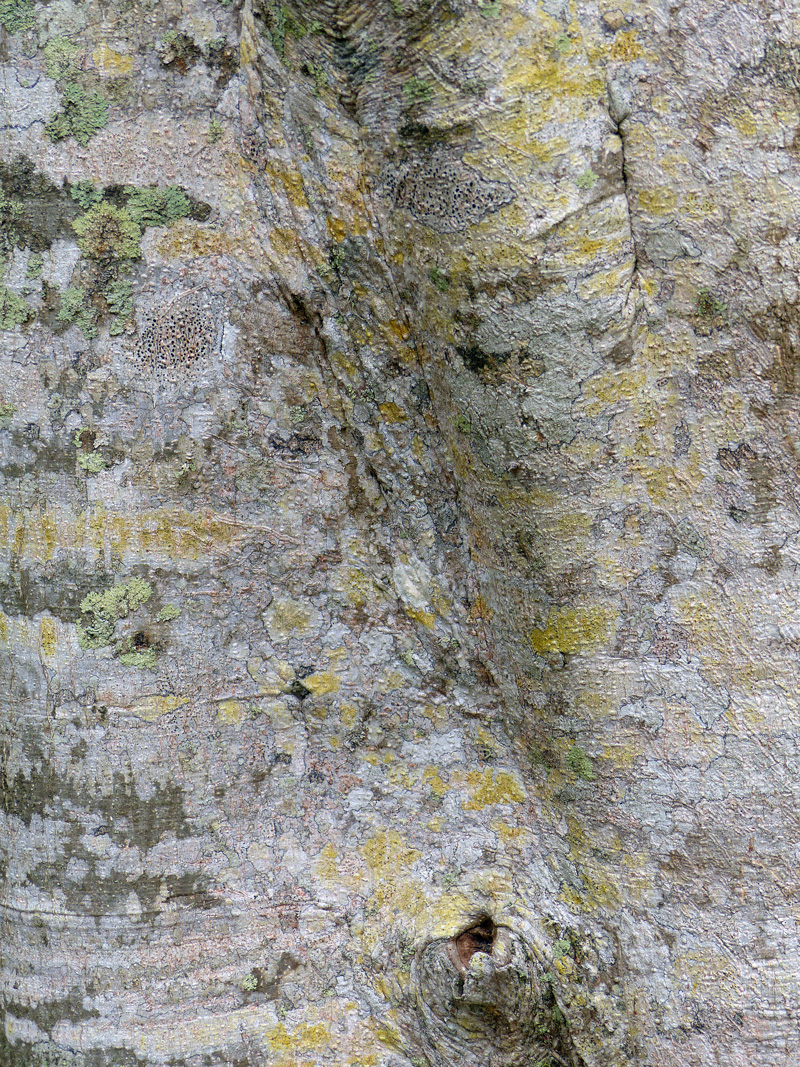 Strangler figs can grow to be large trees, from 50 – 70′ tall and equally wide. Their bark is smooth, tan-ish, and often marked by lovely lichens …