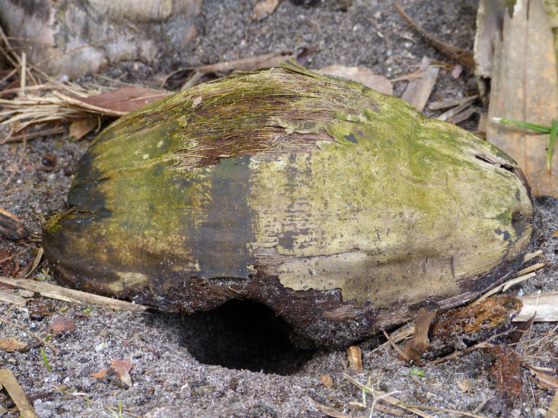 Some crabs are “creative”. This crab has adopted a coconut for a cornice …