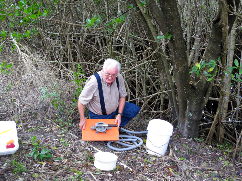 Since 1999 Florida Medical Entomology Laboratory Professor Emeritus Dr. George O’Meara has presented Life in the Pits & Treetops as part of the Volunteer Nature Stewardship Class. We have learned that the holes in moist areas at the Oslo Riverfront Conservation Area (ORCA) are the homes of blue land crabs (Cardisoma guanhumi), specialized crabhole mosquitoes (Deinocerites cancer), and a hermaphroditic fish sometimes called the crabhole fish (Kryptolebias marmoratus).