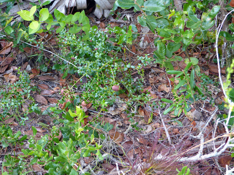 Shiny blueberry (Vaccinium myrsinites) grows in sunny spots along the trails at the Oslo Riverfront Conservation Area (ORCA). Its tiny fruits, shown above, are enjoyed by birds and other wildlife.